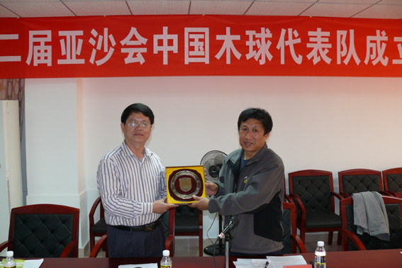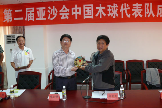 校党委陈封椿副书记代表学校感谢国家体育总局对我校体育工作的高度肯定和大力支持,他指出能够有机会代表国家队参加亚洲赛事,是学校在211工程大学建设中的大事和喜事,希望队员们刻苦训练,争取好成绩,为国家争光,为学校添荣。肖水平领队汇报了木球队备战情况。会上,陈封椿副书记代表304永利集团官网入口与社体中心领导互赠纪念品。