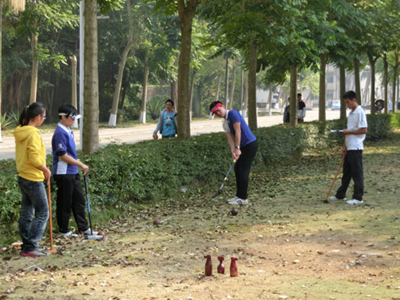 1月1日至5日,以香港中文大学澄子铭为教练的木球队一行21人赴我校进行木球交流活动。我校共有17名男女队员参加了此次交流活动。此次活动有杆数赛、球道赛、混双比赛。