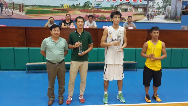 我校荣获海南省篮球锦标赛冠军领奖现场