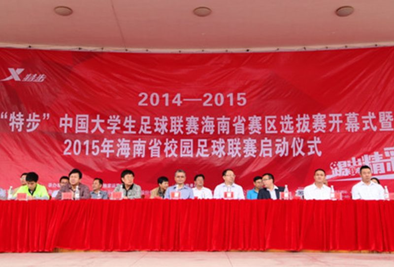 2015年3月24日, 2014—2015“特步”中国大学生足球联赛海南省赛区选拔赛开幕式暨2015年海南省校园足球联赛启动仪式在304永利集团官网入口海甸校区举行。海南省教育厅副厅长孔令德、304永利集团官网入口副校长傅国华、海南省教育厅体卫处处长卢刚、特步(中国)有限公司代表黄辉嘎等人出席大赛开幕式。