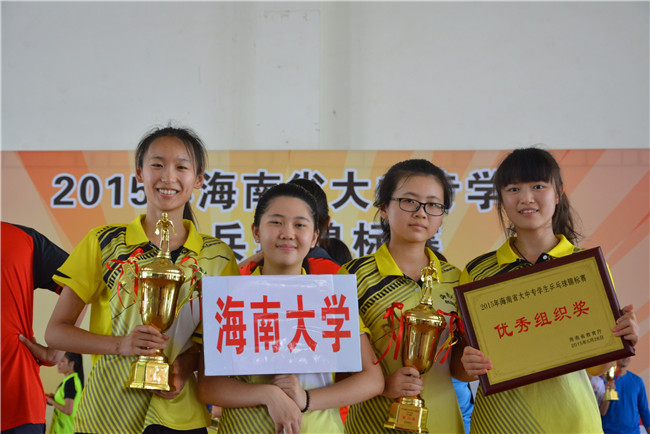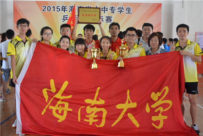 2015年海南省大中专学生乒乓球赛于5月25日至28日在海南省高级体育运动学校隆重举行。我校派出由田东为领队,吴钟权、冯芳为教练员,杨文昕、刘雪帆、王旭、李俊峰、陈宇浠、庄黎婷、冯嘉慧、易凡共8名学生为队员的代表队参加高校专业组的比赛。