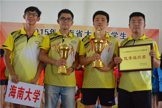 面对拥有乒乓球单招、特招运动员实力不菲的海南师范大学、三亚学院等院校乒乓球代表队,我校乒乓球队教练员根据自身特点,精心布阵。赛场上队员们精诚团结、敢打敢拼,最终夺取了男子、女子团体亚军。在混双比赛中,我校两队混双选手刘雪帆/庄黎婷、李俊峰/易凡表现不俗,包揽混双冠亚军;女单比赛中,陈宇浠、冯嘉慧分获女单亚军、季军;男单比赛中,王旭、杨文昕分获男单季军和第四名。赛后,我校乒乓球代表队因比赛中表现出的良好精神面貌和所取得的优异成绩,还获得组委会颁发的优秀组织奖。
