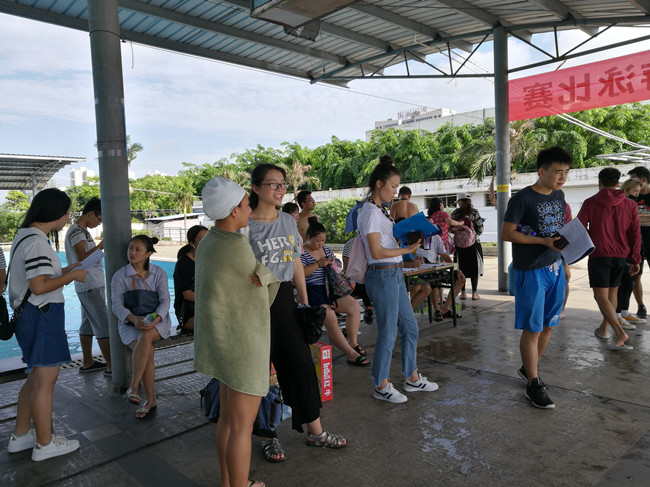 上午8:30分,比赛活动开始,体育部党总支书记陈泰豪宣布比赛开始。他希望通过游泳比赛,使我校游泳运动得到进一步普及,促进我校各项体育运动不断开展,增强学生、教职工的身体素质,并希望大家取得好成绩。比赛中选手们表现优异,在大学生组女子200米蛙泳比赛中,来自儋州校区热带农林学院的邱璇以33163打破原校纪录;大学生组男子200米蛙泳比赛中,来自研究生代表队的文金顺以31473打破原校纪录。他们俩成为场上众人瞩目的焦点人物,其他队员也不甘示弱,奋勇争先,夺金摘银抱铜,频传捷报。