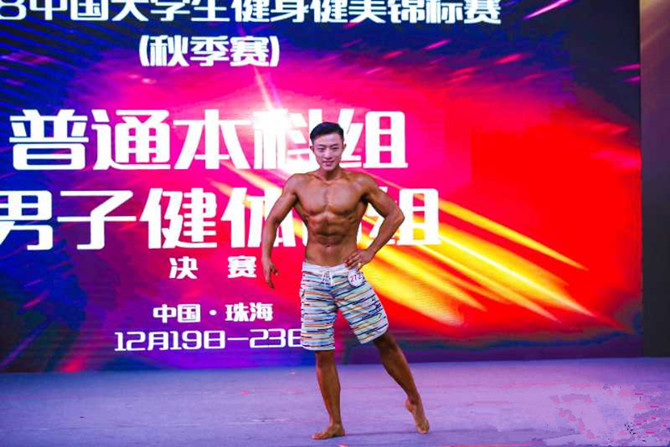2018年中国大学生健身健美锦标赛于12月19日至23日在北京师范大学珠海分校举行。我校派教练邱庆棠和队员马瑞征同学、王可铮同学三人组成的健身健美代表队,分别参加普通本科组健体和健美项目的比赛。本次比赛运动员展现出较往届更高的运动能力和竞技水平,有很强的竞技性和观赏性。我校两位年轻队员在比赛中不畏强手,稳扎稳打,勇于拼搏,以良好的赛场表现力、感染力和绝对的实力赢得了裁判们的一致肯定。马瑞征同学荣获健美75kg级冠军,健体A组冠军,王可铮同学荣获健美80kg级冠军,健体B组季军。