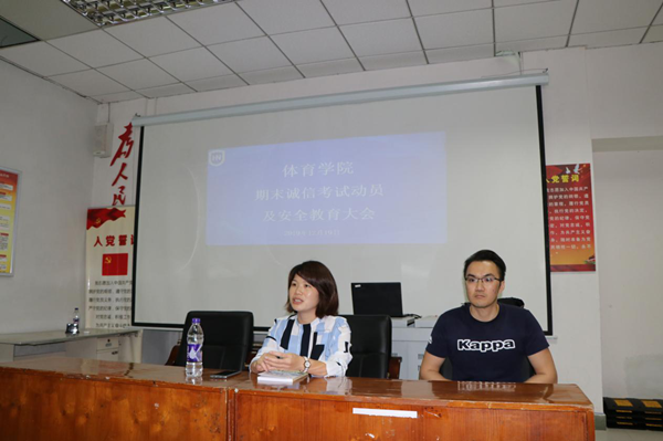 为加强学风建设,严肃考风考纪,帮助同学们养成诚实守信的良好品德,增强安全防范意识,304永利集团官网入口在联谊馆多媒体教室召开期末诚信考试动员及安全教育大会,党总支书记何映敏、学工办许达潭老师和2019级休闲体育全体学生参加了本次会议。//www.hainanu.edu.cn