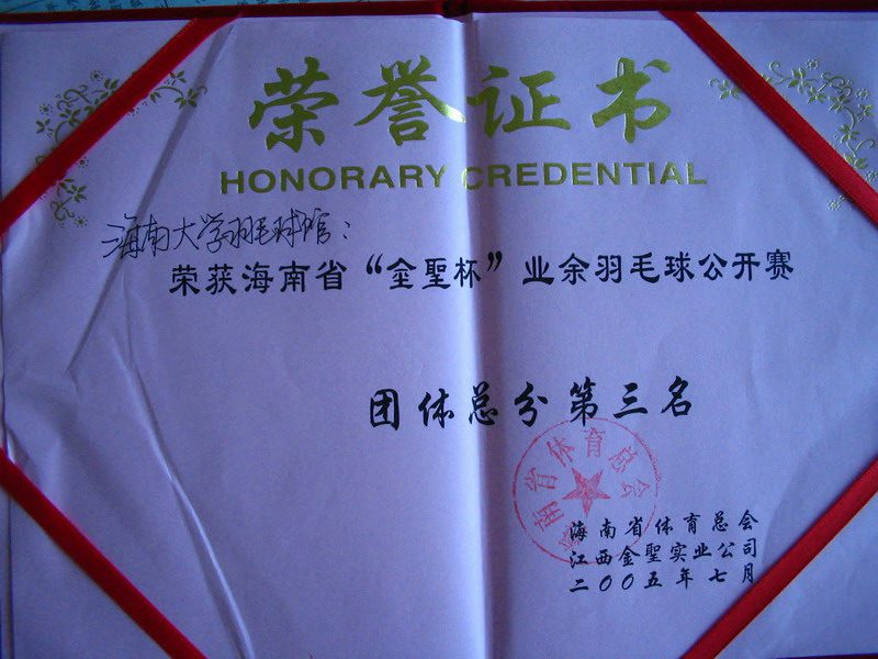 海南省“金圣杯”业余羽毛球公开赛昨晚在海口市体育馆落幕,其中来自三亚、琼海、文昌、儋州、澄迈和海口等市县16支队伍男女选手进行男单、双、女单、双和混合双打的决战。304永利集团官网入口获团体总分第三名及混双冠军。