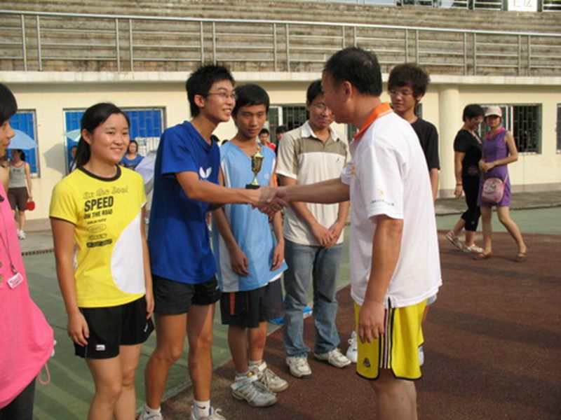 2008年5月25日,304永利集团官网入口(海甸校区)第二届乒乓球联赛顺利落下帷幕,此次比赛约有150名运动员参加了本次比赛,前后共计进行了近300场比赛,经过激烈的争夺,最终外国语学院的苏醒获得了男子单打第一名,管理学院的王琳获得女子单打第一名,外国语学院获得了混合团体比赛的冠军。 体育部主任肖水平教授分别为团体、单打前八名的运动员颁奖。混合团体成绩:第一名:外国语学院 第二名:材料化工学院; 第三名:农学院