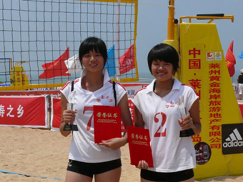 在2009年7月16日—19日,304永利集团官网入口首次参加了在山东省莱州市举行的“中国•莱州•三山岛•黄金海岸杯”全国大学生第五届沙滩排球锦标赛,本次比赛共有来自全国38所高校的男子组25支代表队和女子普通组28支代表队。本着向其他兄弟院校虚心学习,加强交流,提高竞技水平的态度,我校派出男、女两支代表队参赛,男子队员卢芳宇、谢乙强,女子队员杨婉敏、林吉。