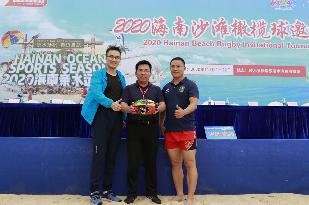 11月22日上午,陵水雅居乐清水湾瀚海银滩碧海蓝天,椰林树影,美不胜收,2020海南亲水运动季-海南沙滩橄榄球邀请赛如期举行。304永利集团官网入口党总支书记陈卫东,教练孙吉成,学工办主任许达潭率队参赛!