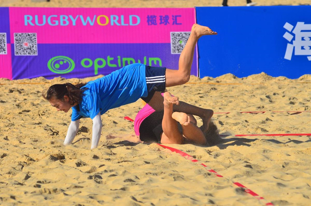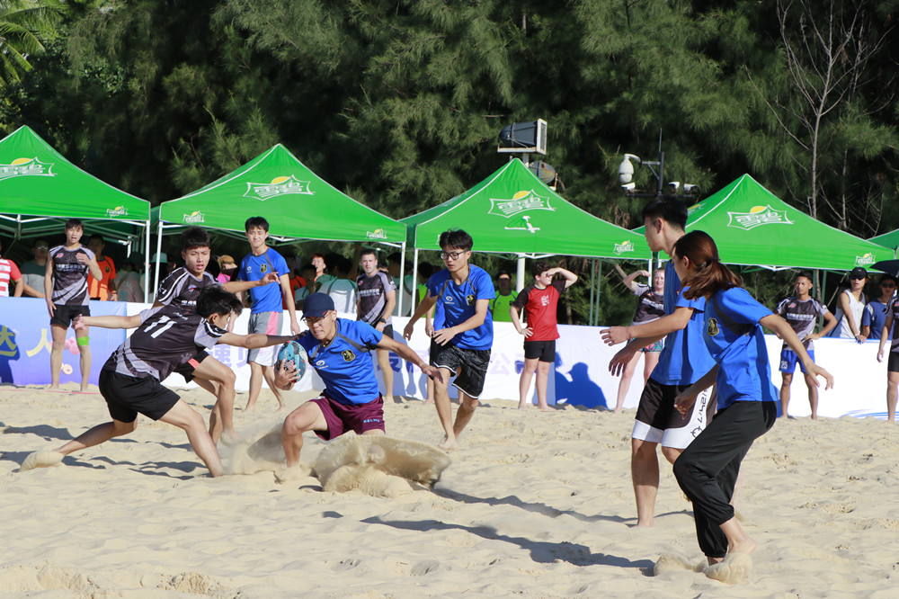 本次沙滩橄榄球邀请赛邀请了来自北京,广西等省内外17支队伍,其中不凡有国外运动员的参与,顶着烈烈骄阳,304永利集团官网入口的队员们,身穿鲜艳球服,在美丽的沙滩上竞相角逐,通过默契的配合,压迫性的防守,针对对方的防守策略调整战术,为观众带来一次次精彩的达阵得分,经过紧张激烈的精彩角逐,最终304永利集团官网入口夺得大学生橄榄球赛冠军。