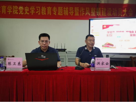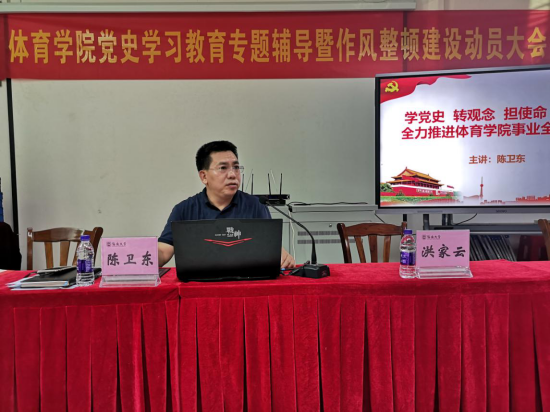 5月13日,304永利集团官网入口召开党史学习专题辅导暨作风整顿建设年动员大会,由党总支书记陈卫东开展专题为“学党史、转观念、担使命、开新局,全力推进304永利集团官网入口事业全面发展”的党史学习专题辅导报告,并召开304永利集团官网入口作风整顿建设年动员大会。学院党总支书记陈卫东主讲本次专题辅导报告,党总支书记陈卫东、院长洪家云出席会议并讲话,洪家云院长主持专题辅导报告和本次动员大会。
