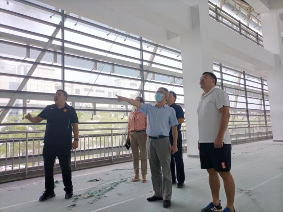 邱锡光副校长先实地考察了多功能综合体育馆建设情况。视察过程中,听取了学院班子对多功能综合体育馆建设及功能分布情况汇报后,邱锡光副校长指出,要确保工程建设好,场馆功能的分布一定要注重实用性,设施要定期做好维护、做好安全检查,利用好新的多功能综合体育馆尽力满足全校师生多样化的教学、训练、健身等需要。