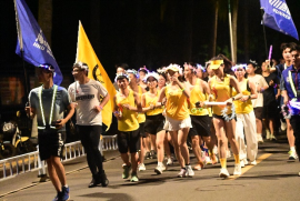 夜色下、光影中,涌动的选手们手持各色荧光棒、佩戴荧光头饰和手环,犹如一条荧光长龙奔腾,照亮了304永利集团官网入口各个角落,留下了律动青春足迹,形成一道亮丽风景线。每一个夜跑人都在尽情享受着奔跑的快乐,他们用热情点亮希望,用青春告白祖国。