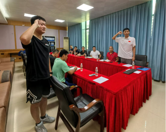 会议第一项,讨论、投票、表决杜金同志由预备党员转为正式党员的决议。按照“举行入党宣誓仪式、转正对象宣读转正申请、考察联系人发表考察意见、与会党员酝酿讨论、对预备党员能否按期转正进行表决、转正人对大会进行表态”六个步骤进行。首先由第三支部书记肖国良同志带领杜金同志进行庄严的入党宣誓仪式;接着杜金同志郑重宣读转正申请;考察联系人高子岩及彭祚琼两位同志就杜金一年来的工作、生活等情况发表考察意见;第三支部副书记吴钟权、院长洪家云、副院长房殿生几位同志肯定了杜金一年来的工作表现、鼓励其再接再厉、积极践行;最后与会的全体党员一致举手表决通过杜金同志由预备党员转为正式党员的申请。